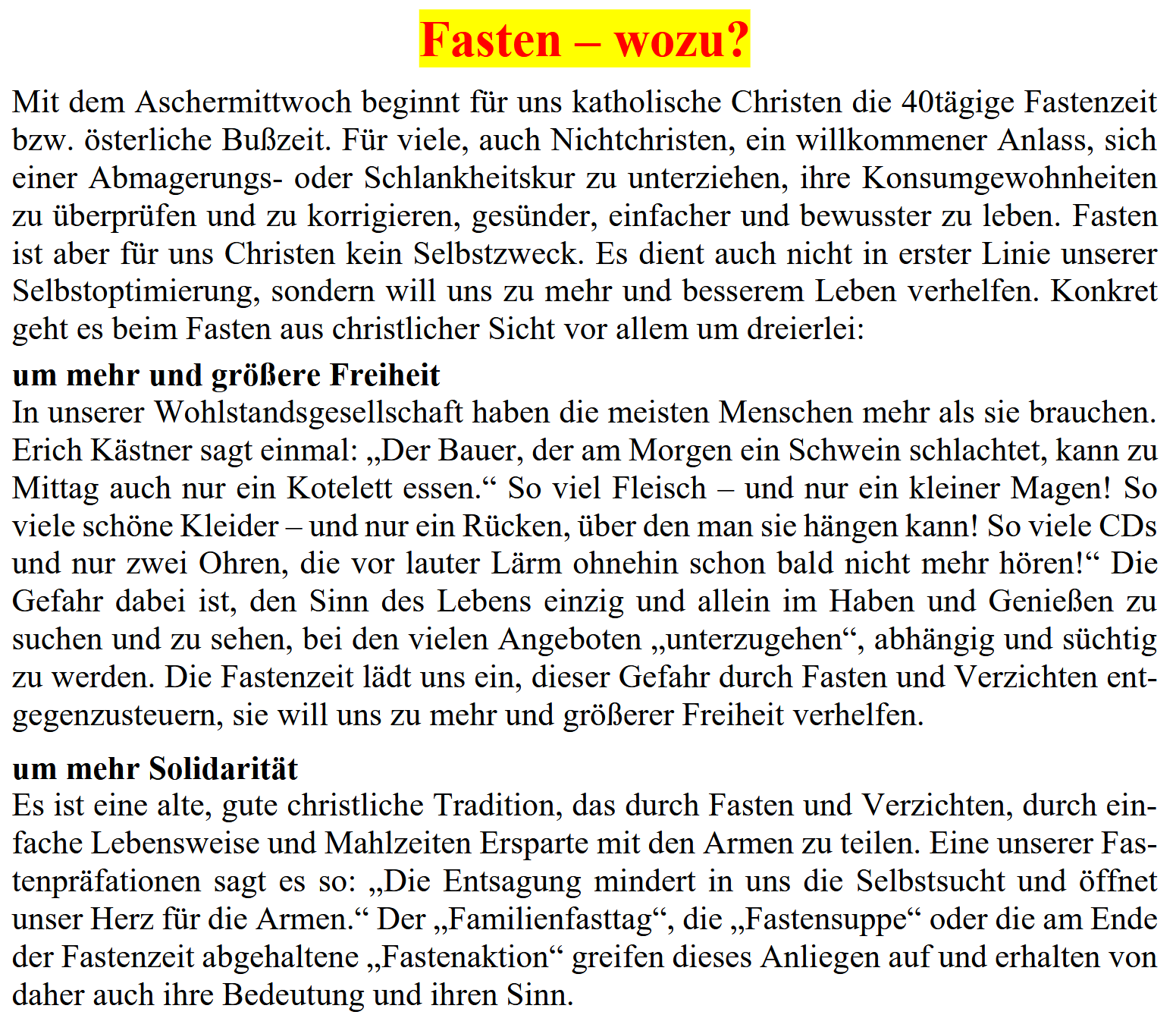 Fasten – wozu?